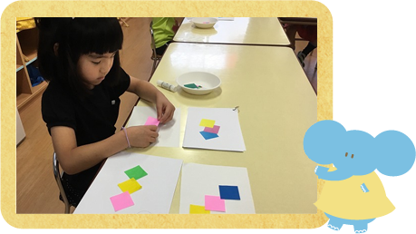 事物を使った体験学習が中心で、論理的思考力+応用力が身につきます。 自宅での「おさらい復習プリント」では、講師が丁寧に添削してくれます。