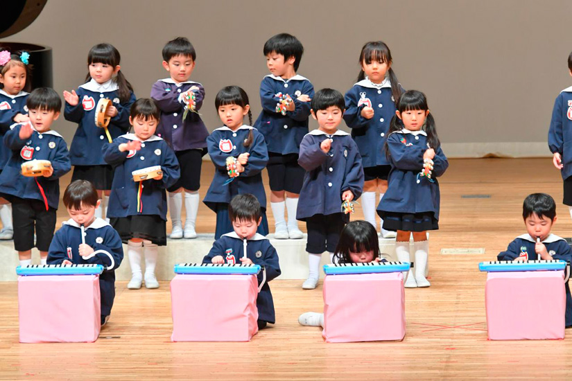 幼稚園では、季節に合わせた童謡をたくさん歌います。そのため、職員はピアノ講師の指導を受けながら、音楽の楽しさを子どもたちに伝えています。